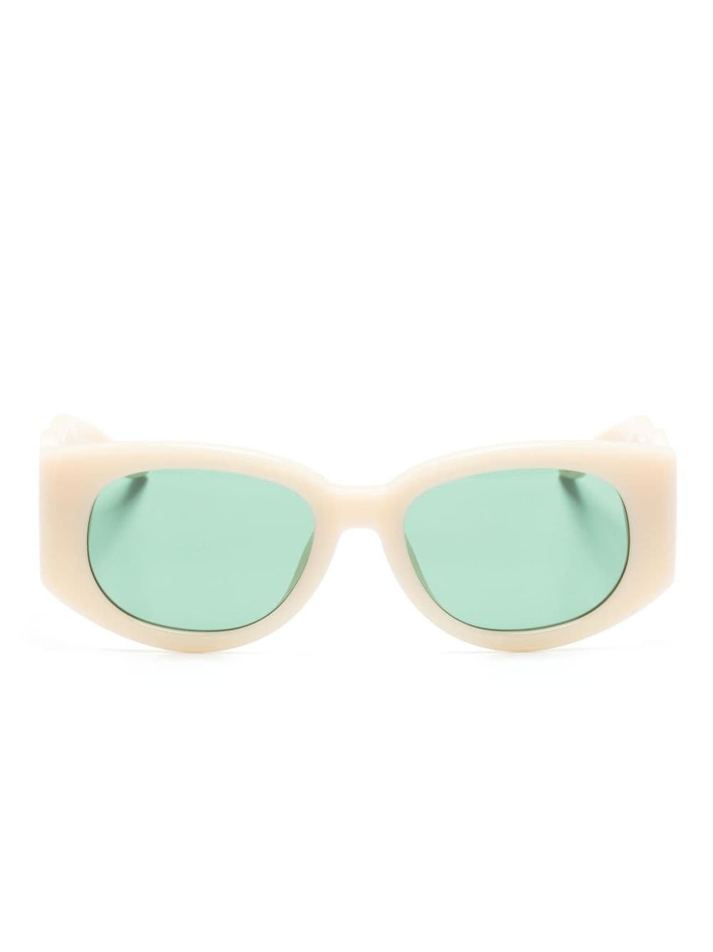 The Memphis rectangle-frame sunglasses Boasting a square-frame silhouette, The Memphis sunglasses from Casablanca are defined by wavy arms and the iconic Laurel plaque to the sides. They're rendered here in a cream iteration with green tinted lenses. Highlights - Cream white - Acetate - Rectangle frame - Green tinted lenses - Uv-protective lenses - Sculpted arms - Logo plaque at the arm - Curved tips - These glasses come with a protective case. Imported Composition Metal 100%, Acetate 100% SIZE & FIT Measurement Arm Length 5.51 in(14 cm) Bridge Width 0.74 in(1.9 cm) Lens Diameter 2.12 in(5.4 cm) Total Width 5.78 in(14.7 cm)