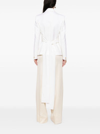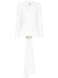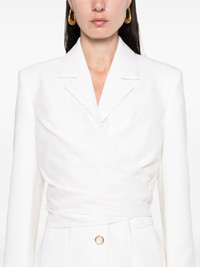 virgin wool wrap tuxedo Highlights - White - Virgin wool - Tailored design - Wrap design - Front button fastening - Rear tie fastening - Notched lapels - Shoulder pads - Long sleeves with buttoned cuffs - Two front jetted pockets - Full lining - Straight hem Made in United Kingdom Composition Outer: Virgin Wool 100% Lining: Viscose 52%, Cotton 48% SIZE & FIT Model measurements Height 5 ft 9 in(1.76 m) Bust/Chest 32.28 in(82 cm) Hips 35.43 in(90 cm) Waist 25.19 in(64 cm) FittingInformation Designed for a slim fit that sits just away from the body offering a close yet comfortable fit The internal shoulder pads offer a structured shape Made from a midweight non-stretch fabric Washing instructions Dry Clean Only