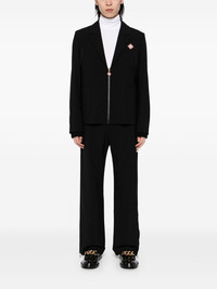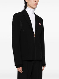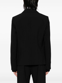 zip fastening jacket Highlights - Black - Notch lapels - Long sleeves - Zip fastening Imported Composition Recycled Polyester 53%, Virgin Wool 43%, Elastane 4% SIZE & FIT Model measurements Height 6 ft 2 in(1.87 m) Bust/Chest 33.07 in(84 cm) Hips 35.43 in(90 cm) Waist 26.77 in(68 cm) FittingInformation Designed to be unstructured, offering a loose fit throughout The internal shoulder pads offer a structured shape Made from a midweight non-stretch fabric