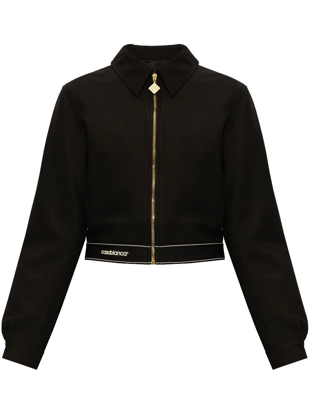 zip-fastening logo-print jacket Highlights - Black - Gold-tone hardware - Branded zip puller - Logo print at the hem - Classic collar - Front zip fastening - Long sleeves - Straight hem - Cropped Imported Composition Polyester 100% Washing instructions Read Manufacturer Guidelines