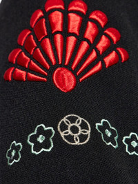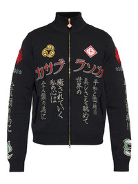 zip-up cardigan Highlights - Black - Zip fastening - Text embroidery - Floral embroidery - Long sleeves Imported Composition Viscose 65%, Polyamide 35% Washing instructions Read Manufacturer Guidelines