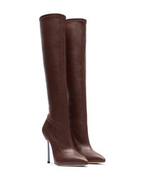 100mm Blade boots Highlights - Chocolate brown - Signature blade heel - Pointed toe Made in Italy Composition Other fibres 100% SIZE & FIT Measurement HEEL 3.93 in(10 cm)