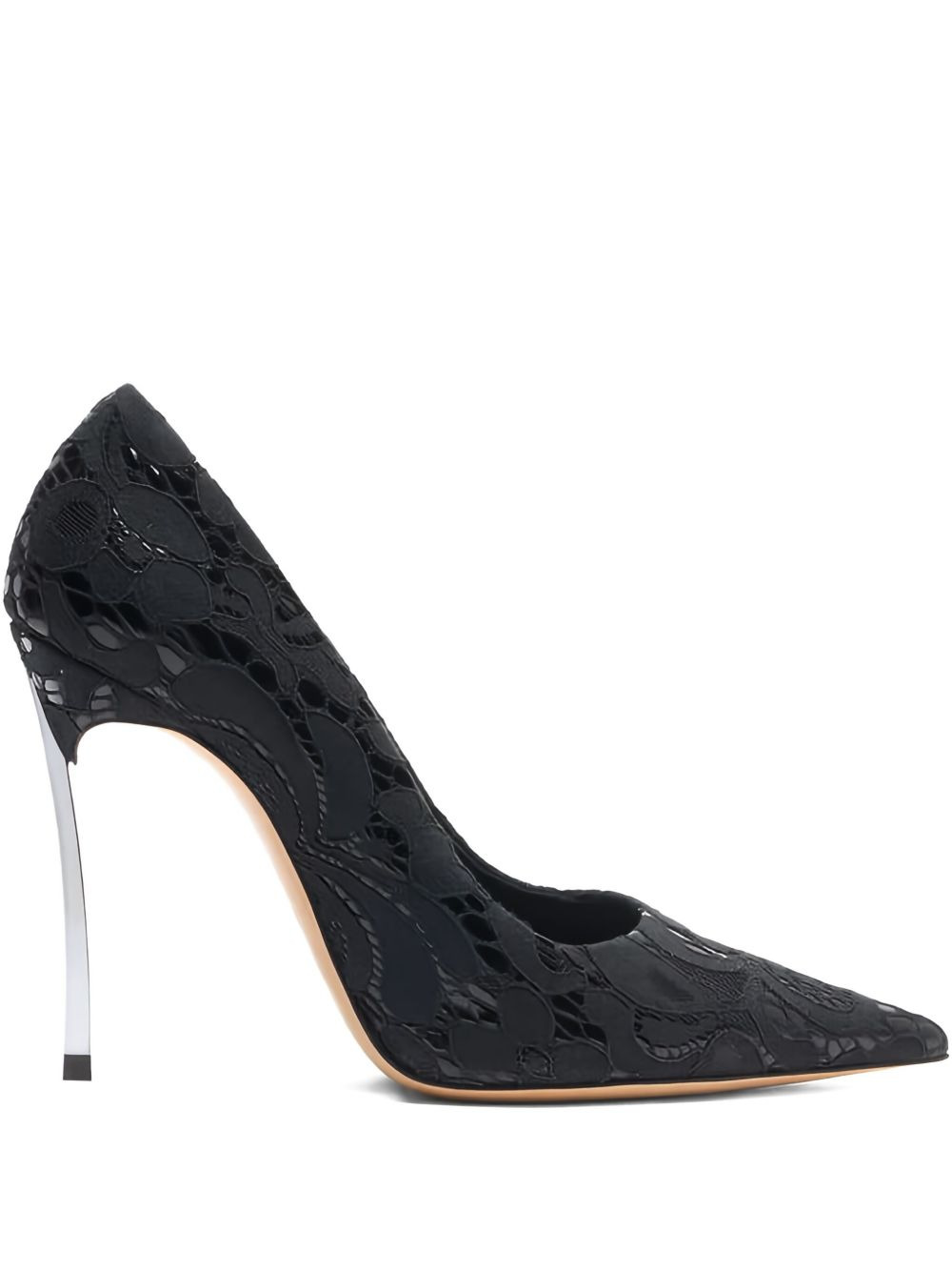 100mm Liberty pumps Highlights - Black - Lace embroidery - Pointed toe - Signature blade heel - Low-cut vamp Made in Italy Composition Outer: Polyurethane 39%, Cotton 25%, Polyester 20%, Nylon 16% Sole: Calf Leather 100% Lining: Calf Leather 100% SIZE & FIT Measurement HEEL 3.93 in(10 cm)