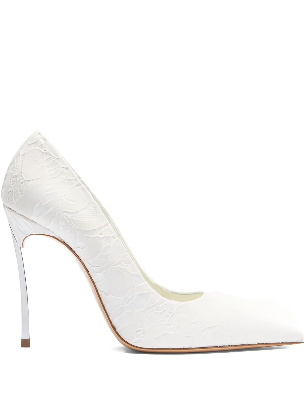 100mm Liberty pumps Highlights - White - Lace overlay - Stiletto heel - Pointed toe Made in Italy Composition Outer: Polyurethane 39%, Cotton 25%, Polyester 20%, Nylon 16% Sole: Calf Leather 100% Lining: Calf Leather 100% SIZE & FIT Measurement HEEL 3.93 in(10 cm)