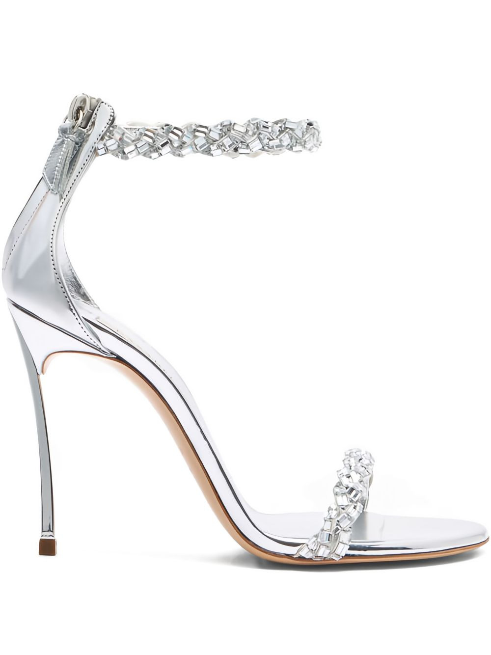 100mm Starsway crystal-embellished stiletto sandals Highlights - Silver-tone - Stiletto heel - Ankle strap - Crystal embellishment - Braided design - Zip fastening Made in Italy Composition Outer: Polyurethane 60%, Polyester 40% Sole: Calf Leather 100% Lining: Polyurethane 100% SIZE & FIT Measurement HEEL 3.93 in(10 cm)