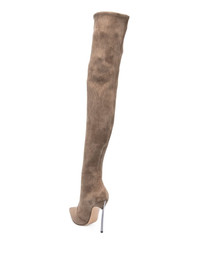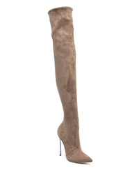 115mm Blade suede boots Highlights - Net light brown - Calf suede - Pointed toe - Slip-on style - High stiletto heel - Thigh-high Made in Italy Composition Lining: Calf Leather 100% Outer: Calf Leather 100% Sole: Calf Leather 100% SIZE & FIT Measurement CIRCUMFERENCE 16.53 in(42 cm) HEEL 5.11 in(13 cm) HEIGHT 24.8 in(63 cm) Sole height 0.39 in(1 cm)