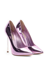 120mm Blade Interstellar metallic pumps Highlights - Pink - Metallic finish - Signature blade heel - Sleek design - Pointed toe Made in Italy Composition Sole: Calf Leather 100%, stainless steel 100% Lining: Polyurethane 100% Outer: Polyurethane 60%, Polyester 40% SIZE & FIT Measurement HEEL 4.72 in(12 cm)