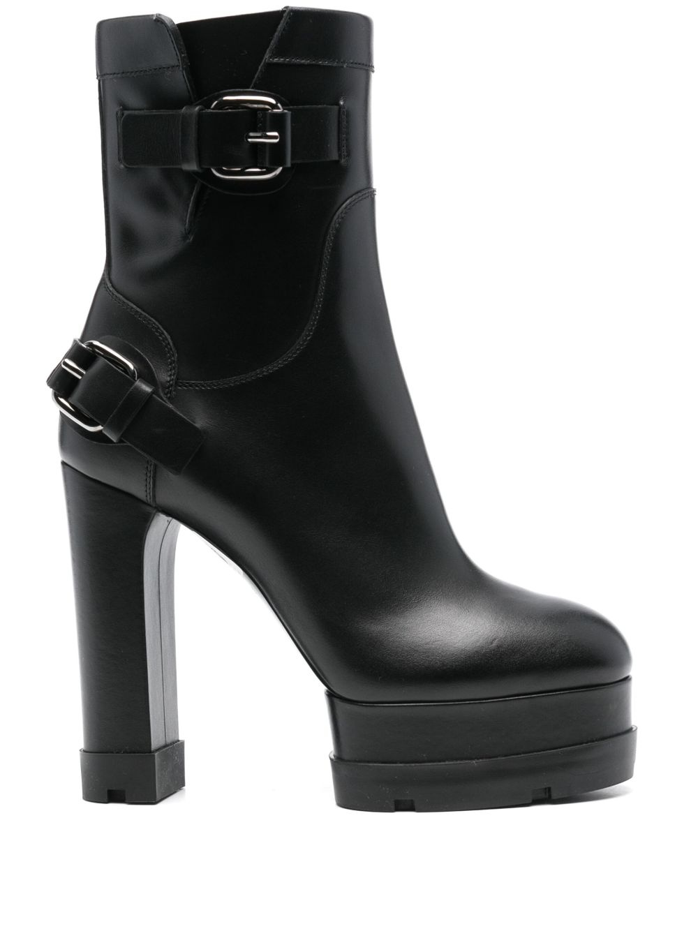 130mm leather ankle boots Highlights - Black - Calf leather - Side zip fastening - Side buckle fastening - 130mm high heel - Rear decorative buckle detail - Round toe - Branded leather insole - Leather lining - Ankle-length - 40mm front platform sole - Rubber outsole - This piece comes complete with a protective dust bag. Made in Italy Composition Leather 100% SIZE & FIT Measurement HEEL 5.11 in(13 cm) PLATFORM 1.57 in(4 cm)