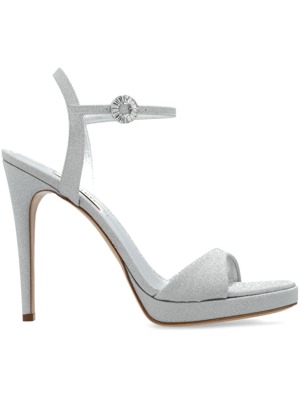 130mm Michelle sandals Highlights - Silver-tone - Buckle-fastening ankle strap - Slingback strap - Crystal buckle detail - Glitter detailing Made in Italy Composition Sole: Leather 100% Lining: Leather 100% Outer: Fabric 100% SIZE & FIT Measurement HEEL 5.11 in(13 cm) PLATFORM 0.78 in(2 cm)