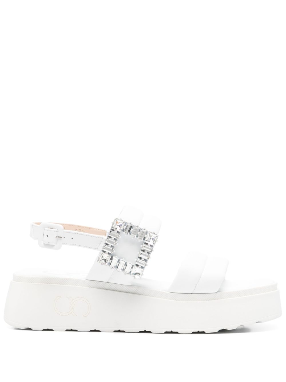 40mm crystal-embellished sandals Highlights - White - Buckle-fastening slingback strap - Rubber sole - Wedge heel - Square open toe Made in Italy Composition Outer: Calf Leather 100% Sole: Rubber 100% Lining: Calf Leather 100% SIZE & FIT Measurement HEEL 1.57 in(4 cm)
