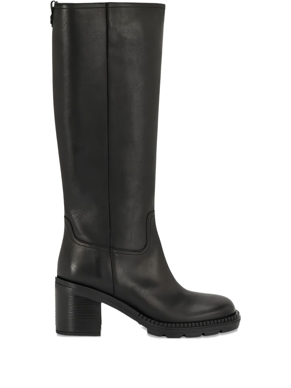 80mm block-heel boots Highlights - Black - Block heel - Ridged sole - Rear zip fastening - Knee-high - Round toe Made In Italy Composition Outer: Leather 100% Lining: Leather 100% Sole: Rubber 100%