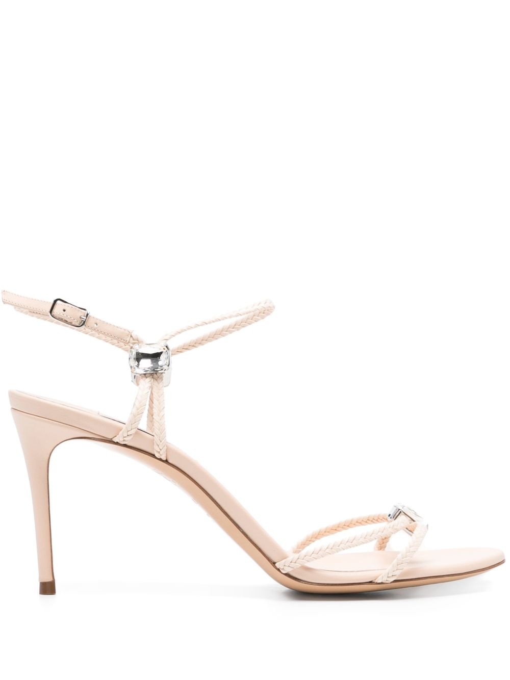 80mm crystal-embellished sandals Highlights - Light pink - Buckle-fastening ankle strap - High stiletto heel - Braided strap - This piece comes complete with a protective dust bag. Made in Italy Composition Lining: Calf Leather 100% Sole: Calf Leather 100% Outer: Polyurethane 100%, Calf Leather 100% SIZE & FIT Measurement HEEL 3.14 in(8 cm)