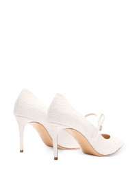 80mm Julia Penny Liberty pumps Highlights - White - Lace detail - Strap - Pointed toe - Stiletto heel - Embellishment Made in Italy Composition Outer: Polyurethane 39%, Cotton 25%, Polyester 20%, Nylon 16% Lining: Calf Leather 100% Sole: Calf Leather 100% SIZE & FIT Measurement HEEL 3.14 in(8 cm)