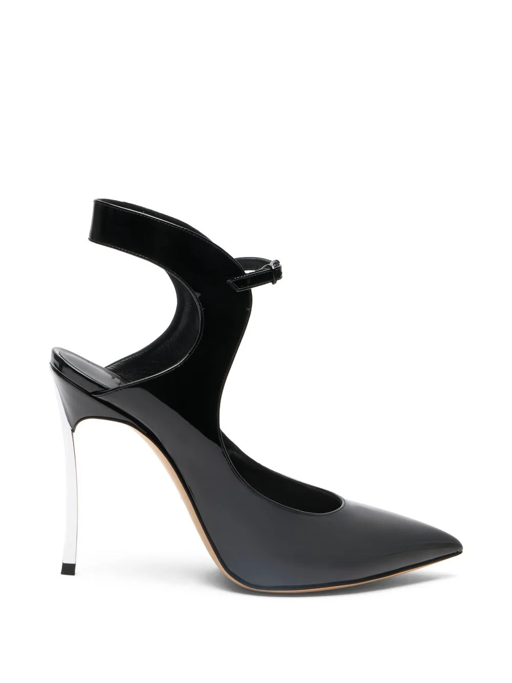 ankle strap heel pumps Highlights - Black - Leather - Ankle strap - Pointed toe - Stiletto heel - Heel detail - Buckle fastening Made in Italy Composition Outer: Patent Calf Leather 100% Sole: Calf Leather 100% Lining: Fabric 100% SIZE & FIT Measurement HEEL 3.93 in(10 cm)