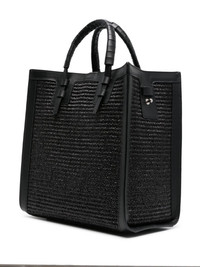 Beaurivage raffia tote bag Highlights - Black - Calf leather - Woven raffia design - Logo patch to the front - T-bar fastening - Two rolled top handles - Adjustable detachable shoulder strap - Main compartment - Debossed internal logo - Internal zip-fastening pocket - Full lining - Silver-tone hardware Made in Italy Composition Outer: Calf Leather 100%, Raffia 100% SIZE & FIT Measurement DEPTH 5.7 in(14.5 cm) HANDLE 3.54 in(9 cm) HEIGHT 9.84 in(25 cm) STRAP 18.5 in(47 cm) WIDTH 9.64 in(24.5 cm)