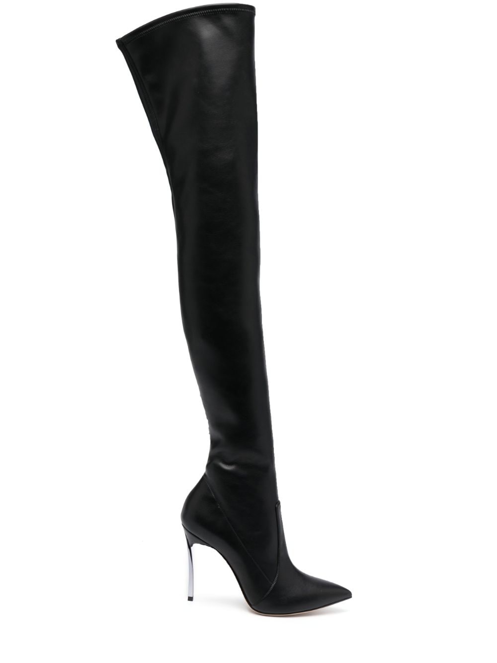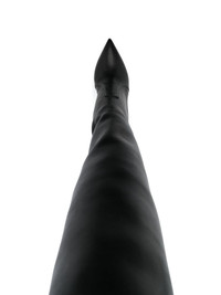 Blade 100mm thigh-high boots Highlights - Black - Calf leather - Smooth grain - Pointed toe - Pull-on style - Thigh-high - High stiletto heel Made in Italy Composition Artificial Leather 100% SIZE & FIT Measurement CIRCUMFERENCE 14.96 in(38 cm) HEEL 3.93 in(10 cm) HEIGHT 24.01 in(61 cm)