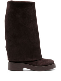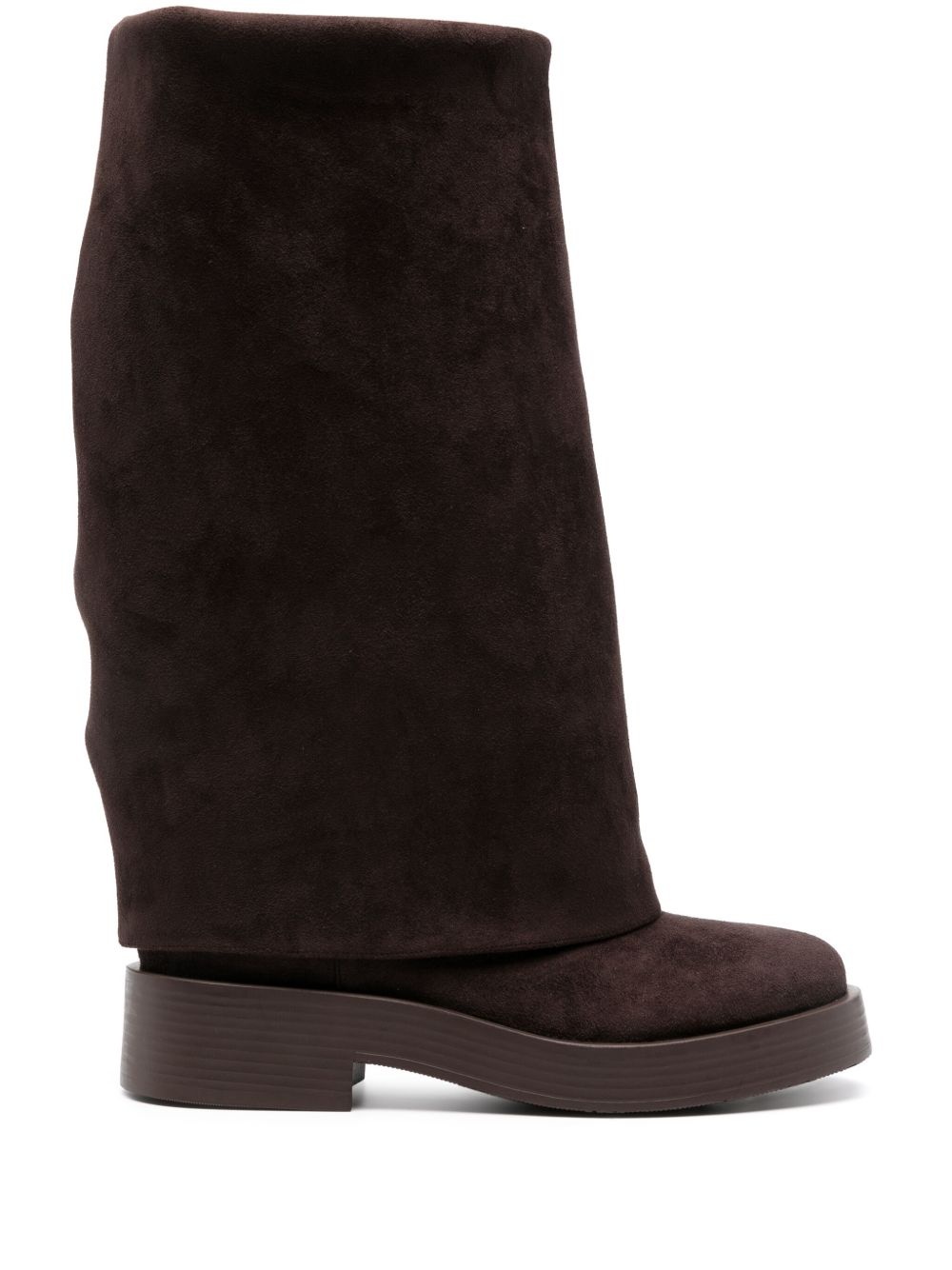 Charlie Arceus boots Highlights - Coffee brown - Faux suede - Layered design - Slip-on style - Low stacked heel - Round toe - Branded leather insole - Rubber sole - Mid-calf length Made in Italy Composition Outer: Polyester 100% Sole: Rubber 100% SIZE & FIT Measurement HEEL 1.77 in(4.5 cm) HEIGHT 12.59 in(32 cm) Sole height 1.18 in(3 cm)