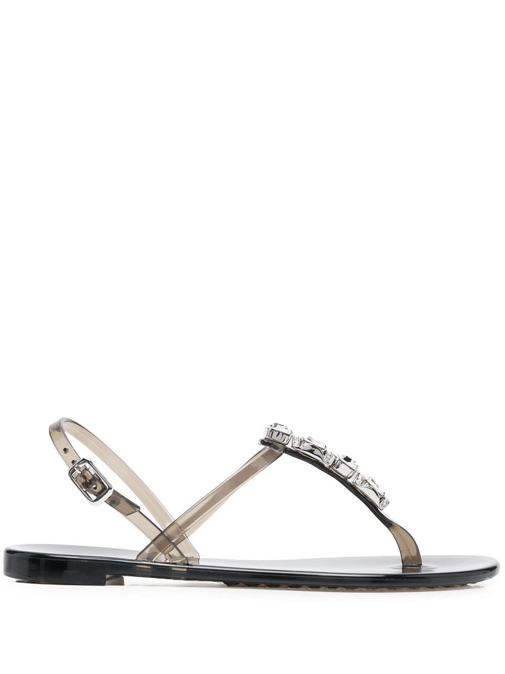 crystal-embellished jelly sandals black crystal embellishment thong strap slingback strap side buckle fastening branded insole flat rubber sole Made in Italy Composition Outer: glass 100%, PVC 100% Lining: PVC 100% Sole: PVC 100% SIZE & FIT Measurement HEEL 0.59 in(1.5 cm)