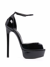 Flora stiletto sandals black patent leather high-shine finish open toe buckle-fastening ankle strap branded heel counter platform sole high stiletto heel Made in Italy Composition Lining: Leather 100% Sole: Leather 100% Outer: Patent Leather 100% SIZE & FIT Measurement CIRCUMFERENCE 7.87 in(20 cm) HEEL 5.51 in(14 cm) HEIGHT 2.75 in(7 cm) Sole height 1.37 in(3.5 cm)