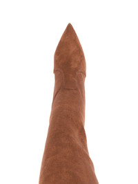 Julia 100mm above-knee boots Highlights - Earth brown - Faux suede - Stretch-design - Pointed toe - Slip-on style - Above-knee length - 100mm high stiletto heel Made in Italy Composition Sole: Calf Leather 100% Outer: Eco Leather 100% Lining: Eco Leather 100% SIZE & FIT Measurement CIRCUMFERENCE 15.74 in(40 cm) HEEL 3.93 in(10 cm) HEIGHT 24.4 in(62 cm)