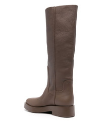knee-high leather boots Highlights - Brown - Calf leather - Grained texture - Round toe - Knee-high - Flat rubber sole Made in Italy Composition Leather 100% SIZE & FIT Measurement CIRCUMFERENCE 14.96 in(38 cm) HEEL 1.77 in(4.5 cm) HEIGHT 15.74 in(40 cm) Sole height 1.18 in(3 cm)