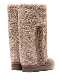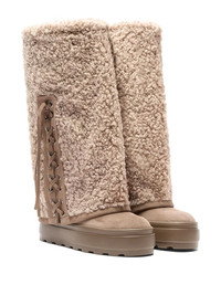 lace-up platform boots Highlights - Beige - Faux-shearling texture - Platform sole - Lace-up fastening - Round toe - Ridged sole Made in Italy Composition Outer: Polyester 50%, Calf Leather 50% Sole: Rubber 100% Lining: Fabric 100%