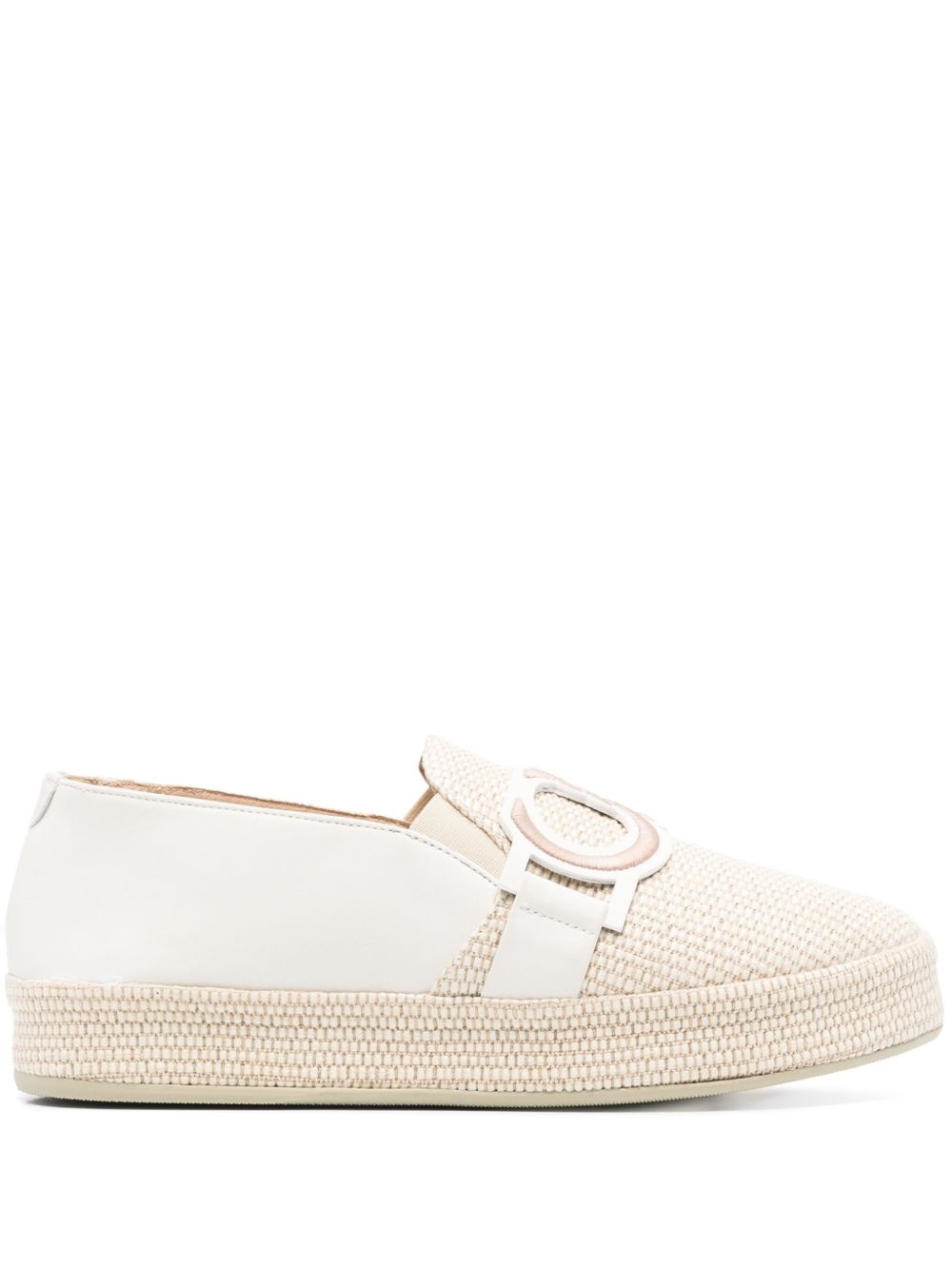 logo-apllique loafers Highlights - Light beige - Elasticated side panels - Flat sole - This piece comes complete with a protective dust bag. Made in Italy Composition Outer: Fabric 100%, Calf Leather 100%, Straw 100% Sole: Rubber 100% Lining: Calf Leather 100%