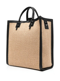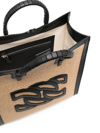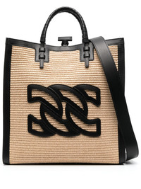 logo-detail leather tote bag black/beige leather/straw woven wicker design embroidered logo leather trim main compartment internal logo patch internal zip-fastening pocket two top handles logo shoulder strap Made in Italy Composition Lining: Kid Leather 100% Outer: Straw 100%, Polyurethane 100% SIZE & FIT Model measurements Height 5 ft 11 in(1.8 m) Bust/Chest 31.49 in(80 cm) Hips 35.43 in(90 cm) Waist 24.4 in(62 cm) Measurement DEPTH 5.9 in(15 cm) HEIGHT 13.77 in(35 cm) WIDTH 13.77 in(35 cm)