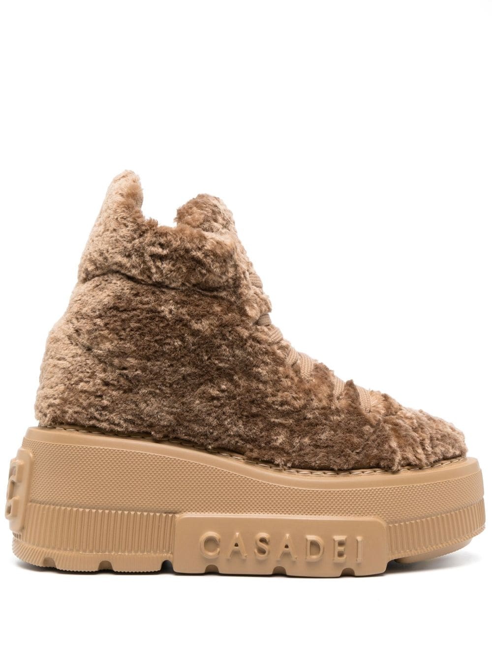 Nexus fleece-texture sneakers Highlights - Caramel brown - Logo at the sole - Fleece texture - Front lace-up fastening - Round toe - Branded insole - Flat sole Made in Italy Composition Outer: Polyester 100% Sole: PVC 100% Lining: Fabric 100% SIZE & FIT Measurement CIRCUMFERENCE 8.26 in(21 cm) HEEL 3.03 in(7.7 cm) HEIGHT 5.9 in(15 cm) PLATFORM 2.24 in(5.7 cm)