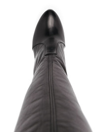 over the knee boots black leather almond toe platform sole high heel thigh-high Made in Italy Composition Outer: Leather 100% Lining: Leather 100% Sole: Leather 100% SIZE & FIT Measurement CIRCUMFERENCE 14.17 in(36 cm) HEEL 5.7 in(14.5 cm) HEIGHT 19.29 in(49 cm) PLATFORM 1.57 in(4 cm)