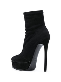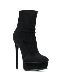 platform ankle boots With over 50 years of experience in the industry, luxury footwear brand Casadei prove to be experts in fashioning timeless, elegant yet attention-grabbing shoe silhouettes for the modern woman. These black suede platform ankle boots feature a pointed toe, a pull-on style, a platform sole and a high stiletto heel. Made In Italy Composition Suede 100% SIZE & FIT Measurement HEEL 5.9 in(15 cm) CIRCUMFERENCE 8.66 in(22 cm) PLATFORM 1.57 in(4 cm) HEIGHT 4.72 in(12 cm)