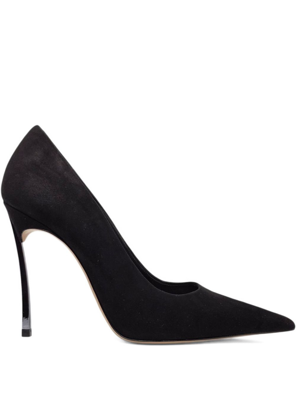 pointed stiletto pumps Highlights - Black - Pointed toe - Stiletto heel - Heel height: 100mm Made in Italy Composition Outer: Calf Suede 100% Lining: Calf Leather 100% Sole: Calf Leather 100% SIZE & FIT Measurement HEEL 3.93 in(10 cm)