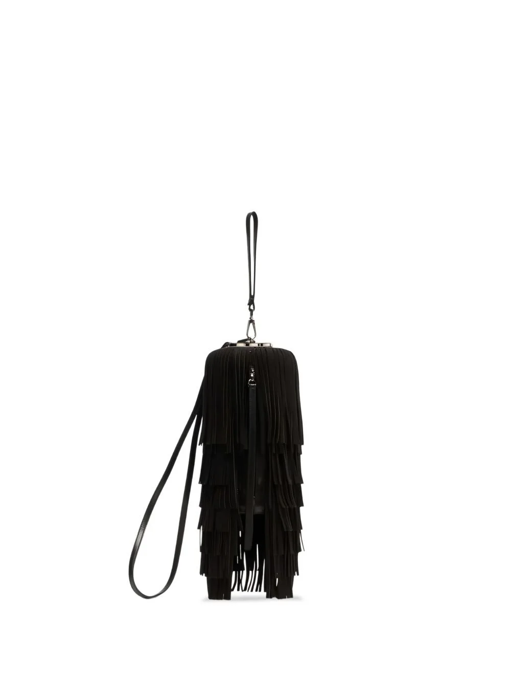 Pon Pon clutch bag Highlights - Black - Layered fringe detailing - Zip fastening - Top handle Made in Italy Composition Lining: Silk 100% Outer: Calf Suede 100% SIZE & FIT Measurement DEPTH 9.44 in(24 cm) HANDLE 11.81 in(30 cm) HEIGHT 9.44 in(24 cm) WIDTH 16.53 in(42 cm)