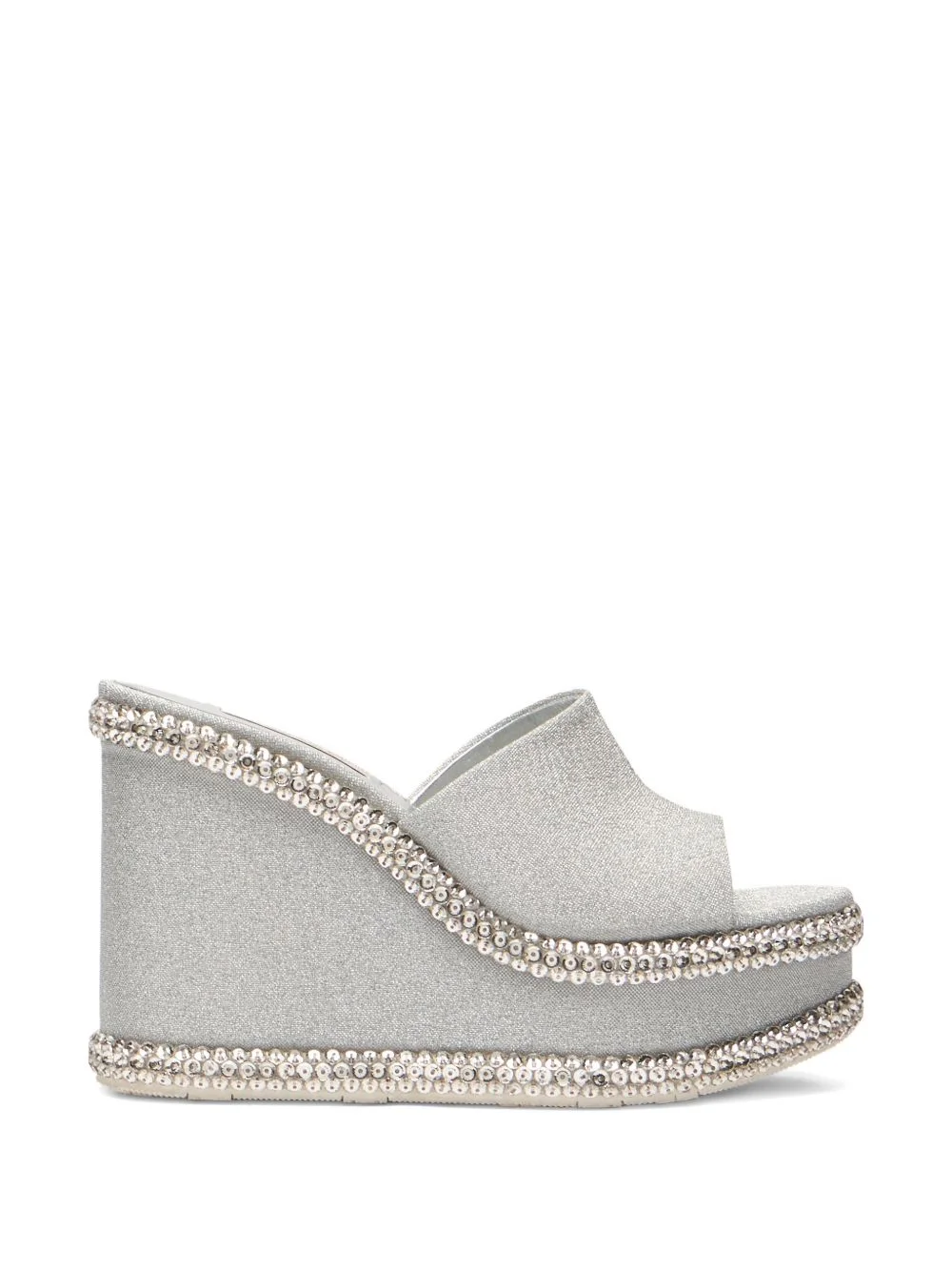Sirio wedge sandals Highlights - Silver - Metallic finish - Studded trim - Slip-on style - Open toe - High wedge heel Made in Italy Composition Polyamide 38%, Polyurethane 32%, Thermoplastic Polyurethane (TPU) 30% SIZE & FIT Measurement HEEL 3.93 in(10 cm)