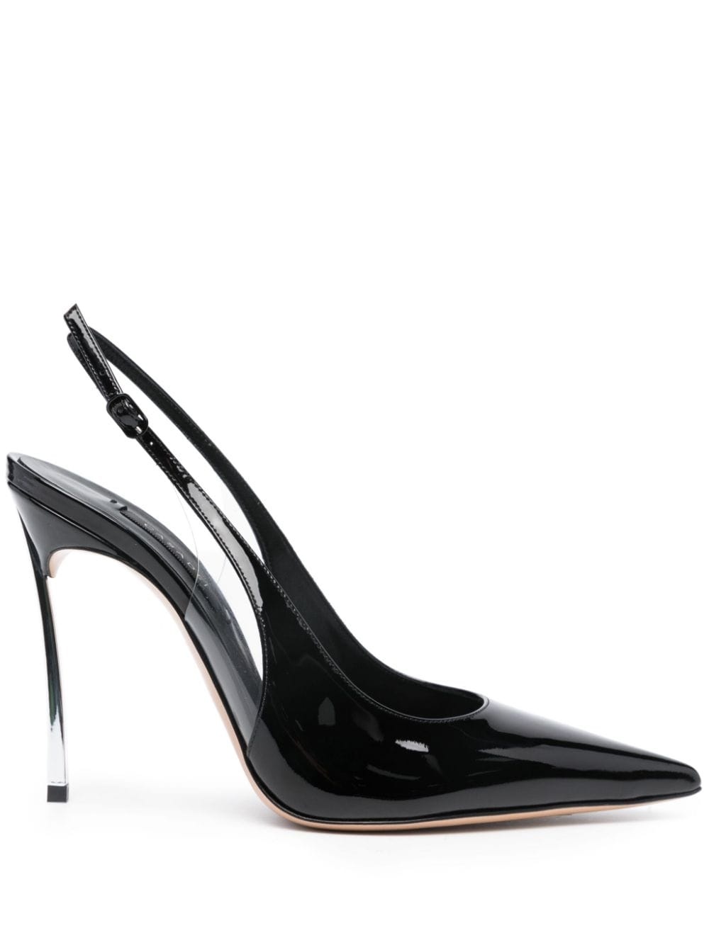 Superblade 100mm pumps Highlights - Black - Leather - Patent finish - Pointed toe - Branded leather insole - High stiletto heel - Leather sole - Buckle-fastening slingback strap Made in Italy Composition Outer: Patent Leather 100%, PVC 100% Lining: Calf Leather 100% Sole: Calf Leather 100% SIZE & FIT Measurement HEEL 4.52 in(11.5 cm) HEIGHT 1.18 in(3 cm)