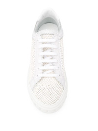 woven low-top sneakers White calf leather woven low-top trainers from Casadei featuring a woven effect, a round toe, a lace fastening and a white rubber sole. Made in Italy Composition Calf Leather 100% SIZE & FIT FittingInformation This piece fits small – take one size up Measurement HEEL 1.57 in(4 cm) Sole height 1.37 in(3.5 cm)
