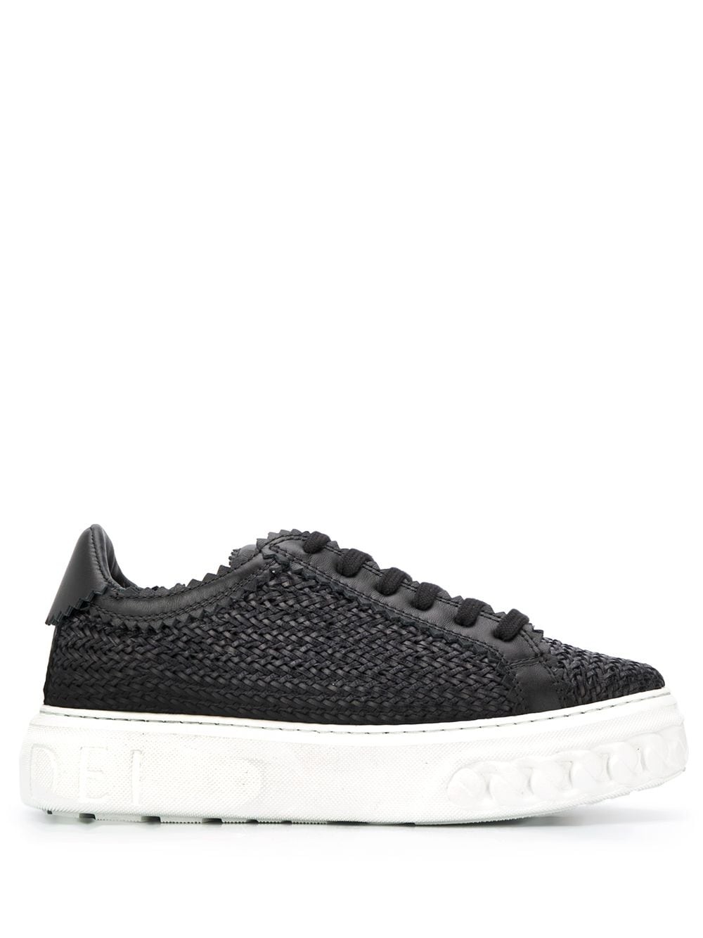 woven off-road sneakers Black and white leather woven off-road sneakers from Casadei featuring a round toe, a lace-up front fastening, a platform sole and zig-zag edging. Made in Italy Composition Calf Leather 100% SIZE & FIT Measurement HEEL 1.57 in(4 cm) Sole height 0.98 in(2.5 cm)
