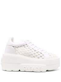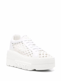 woven platform sneakers white leather interwoven design platform sole round toe front lace-up fastening Made in Italy Composition Leather 100% SIZE & FIT Measurement HEEL 2.75 in(7 cm) PLATFORM 1.96 in(5 cm)