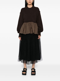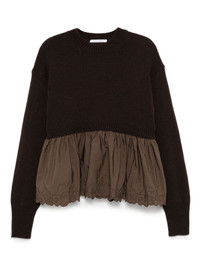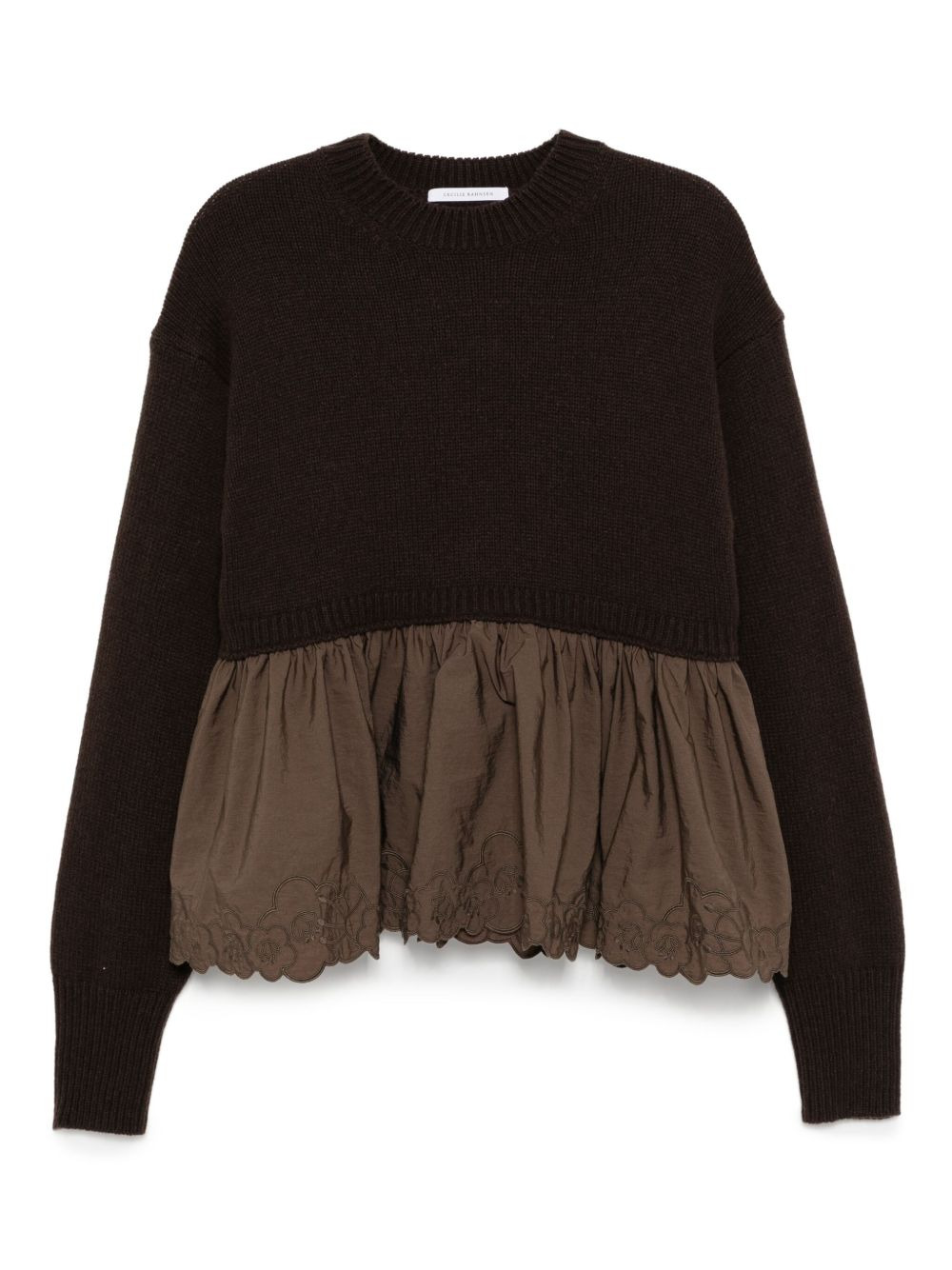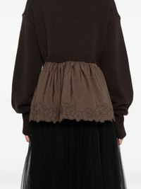 Embroidered cashmere and wool-blend and shell peplum sweater Brown