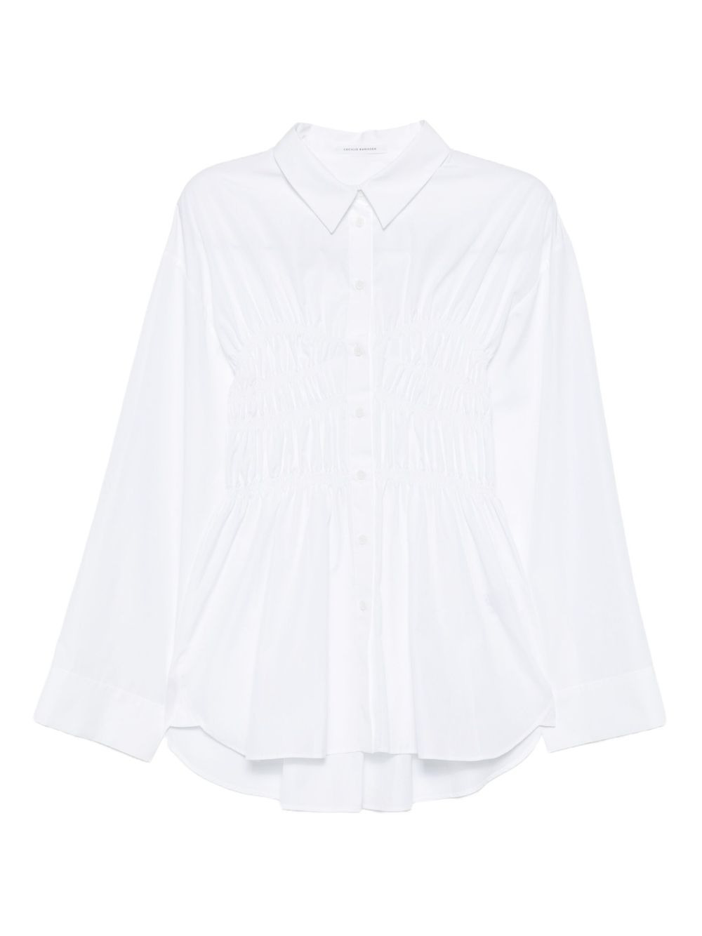 Braxton shirt Highlights - White - Front button fastening - Elasticated trim - Buttoned-cuff sleeves - Flared hem Imported Composition Cotton 100% SIZE & FIT Model measurements Height 5 ft 11 in(1.8 m) Bust/Chest 30.7 in(78 cm) Hips 36.22 in(92 cm) Waist 25.59 in(65 cm) FittingInformation Designed for a close fit at the chest and waist with a loose fit at the hip Made from a lightweight non-stretch fabric Washing instructions Machine Wash