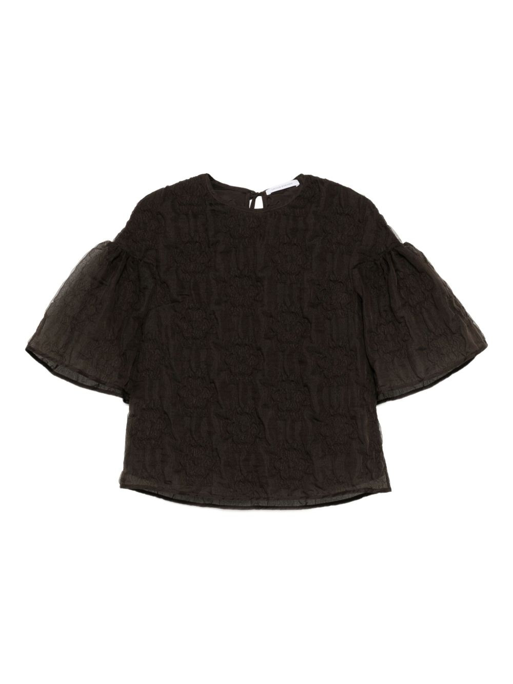 Bryndis top Highlights - Cedar brown - Rear button fastening - Crew neck - Short sleeves Imported Composition Outer: Cotton 44%, Polyamide 33%, Polyester 23% Lining: Cupro 53%, Polyester 47% SIZE & FIT Model measurements Height 5 ft 9 in(1.76 m) Bust/Chest 32.28 in(82 cm) Hips 35.82 in(91 cm) Waist 25.59 in(65 cm) FittingInformation Designed to be unstructured, offering a loose fit throughout Made from a midweight non-stretch fabric Washing instructions Dry Clean Only