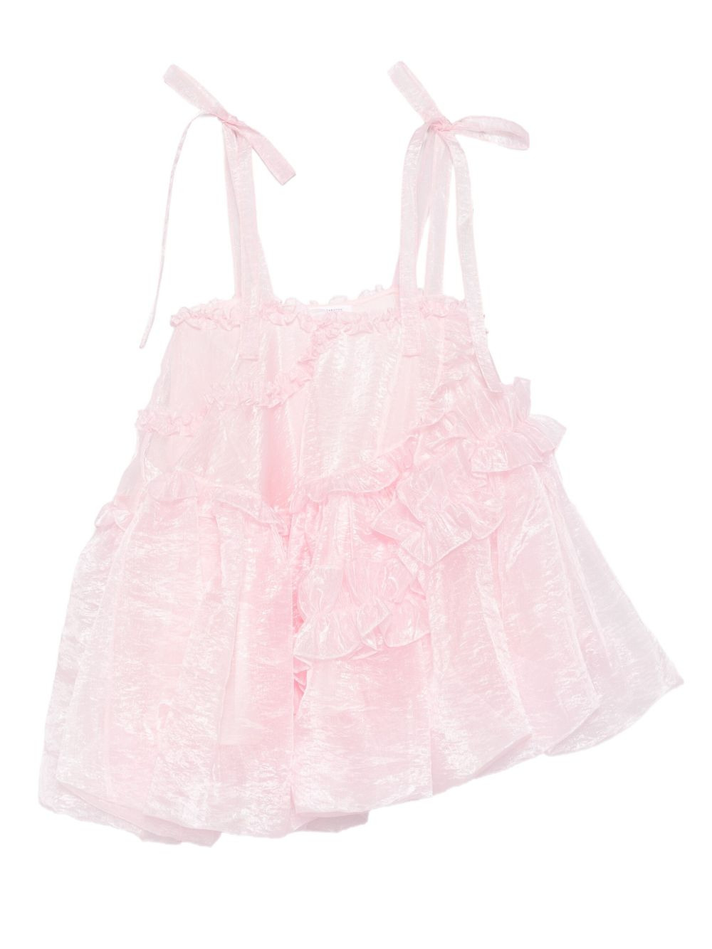 Cristina bow-detailed tiered ruffled crinkled-taffeta mini dress Pastel pink