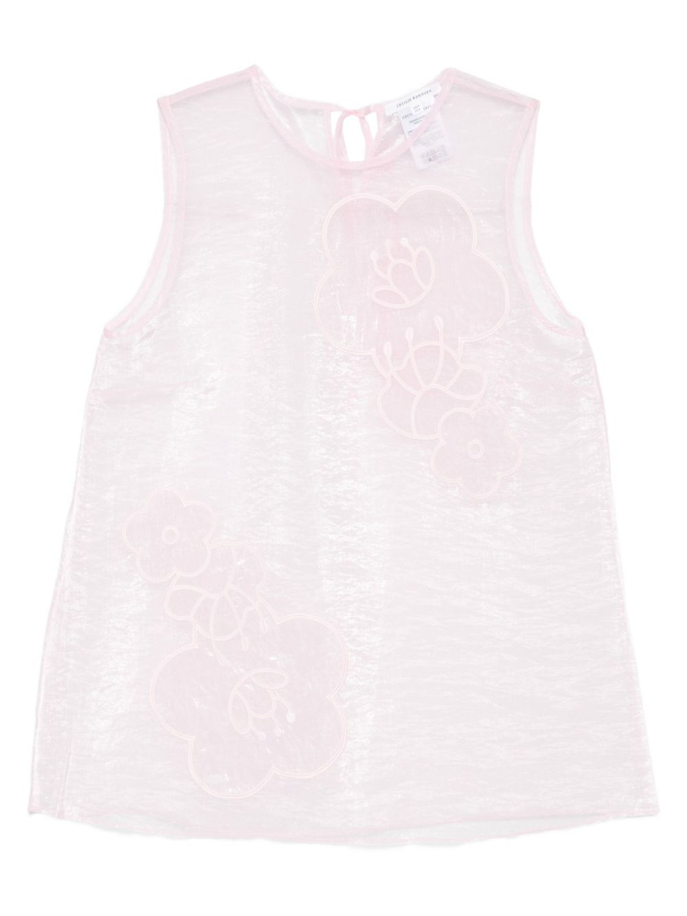 floral-embellished sleeveless top Highlights - Pink - Sleeveless - Sheer design - Floral embellishment - Round neck Imported Composition Polyamide 55%, Polyester 45% SIZE & FIT Model measurements Height 5 ft 10 in(1.78 m) Bust/Chest 33.46 in(85 cm) Hips 36.22 in(92 cm) Waist 23.22 in(59 cm) Washing instructions Hand Wash