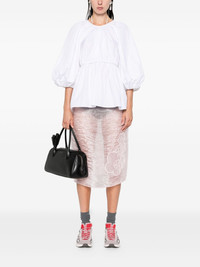 gathered-waist puff-sleeve top
