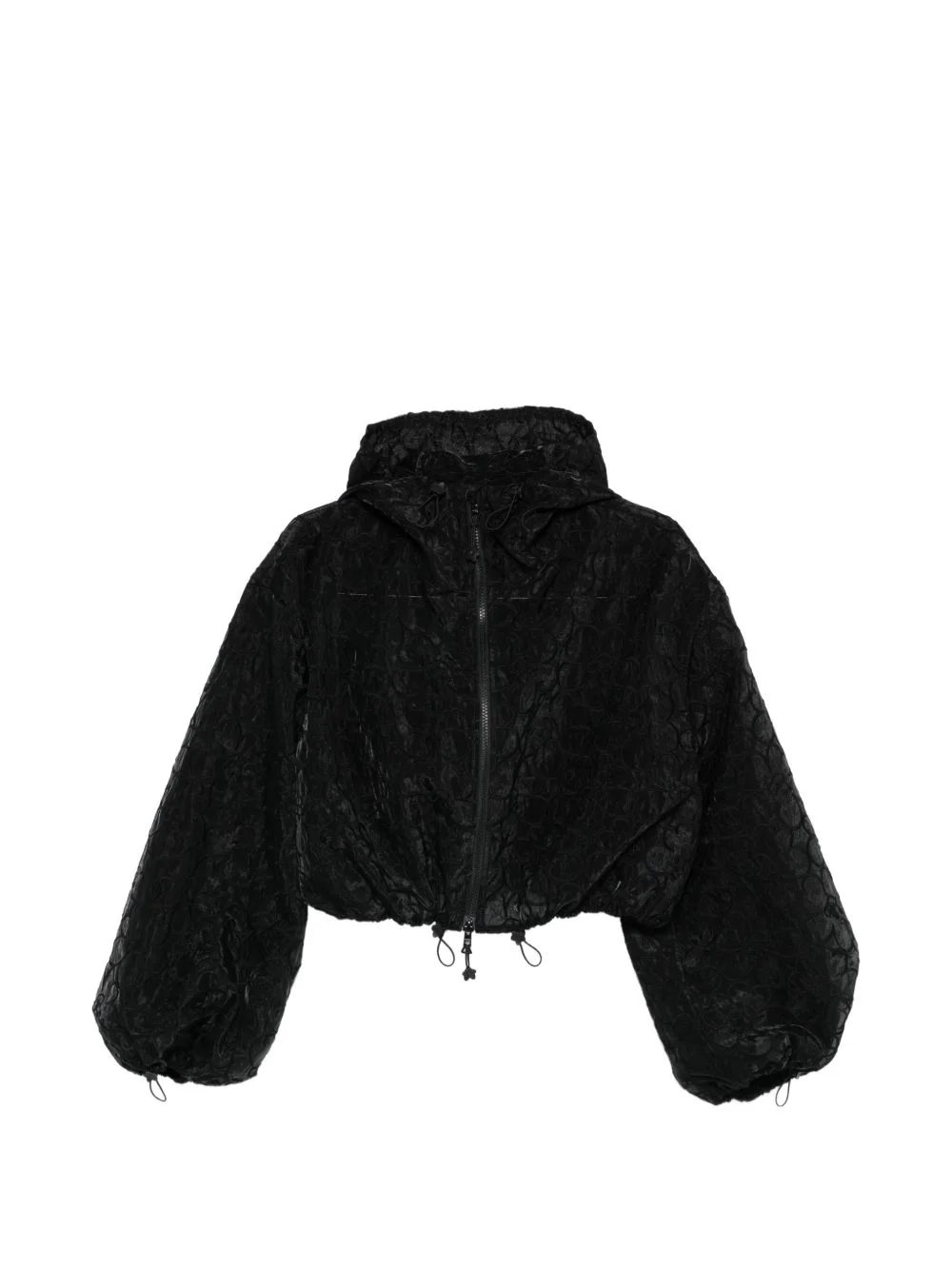 hooded crop jacket Highlights - Black - Floral jacquard - Drawstring hem - Front zip fastening - Long balloon sleeves - Hooded Imported Composition Outer: Cotton 43%, Polyester 32%, Polyamide 25% Lining: Polyamide 55%, Polyester 45% Washing instructions Dry Clean Only