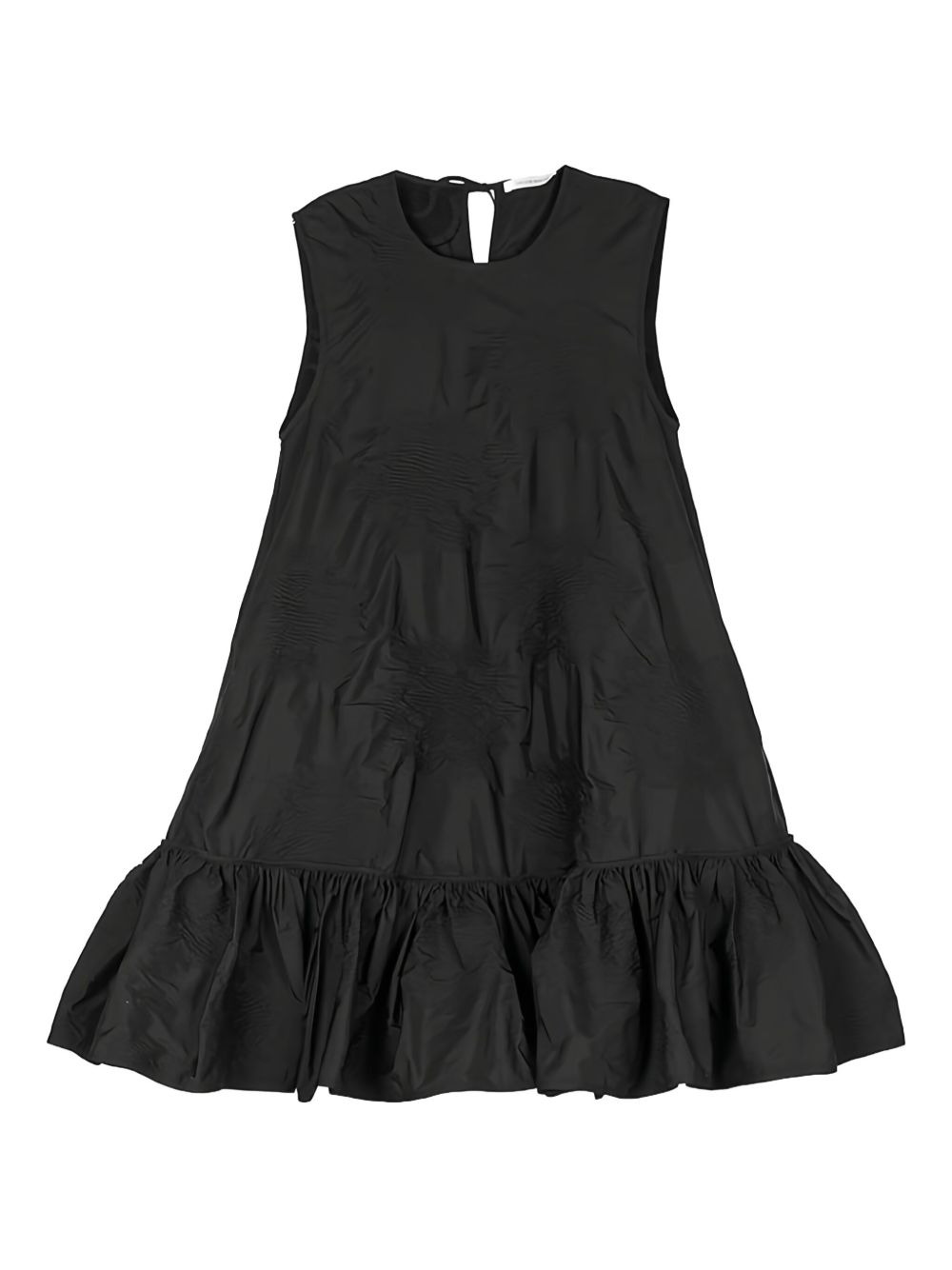 jacquard ruffled lala dress Highlights - Black - Jacquard pattern - Ruffled hem - Sleeveless - Rear tie fastening - Round neck Imported Composition Polyester 72%, Acrylic 28% Washing instructions Dry Clean Only