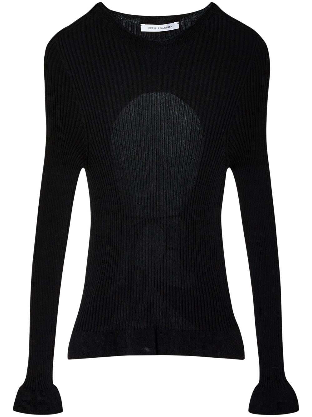 Jayla knitted top The Jayla top from Cecilie Bahnsen is spun from a cotton blend, and enclosed with signature wisp thin bows at the back Highlights - Black - Cotton blend - Knitted construction - Ribbed knit - Cut-out detailing - Round neck - Rear tie fastening - Long sleeves Imported Composition Cotton 78%, Polyamide 22%