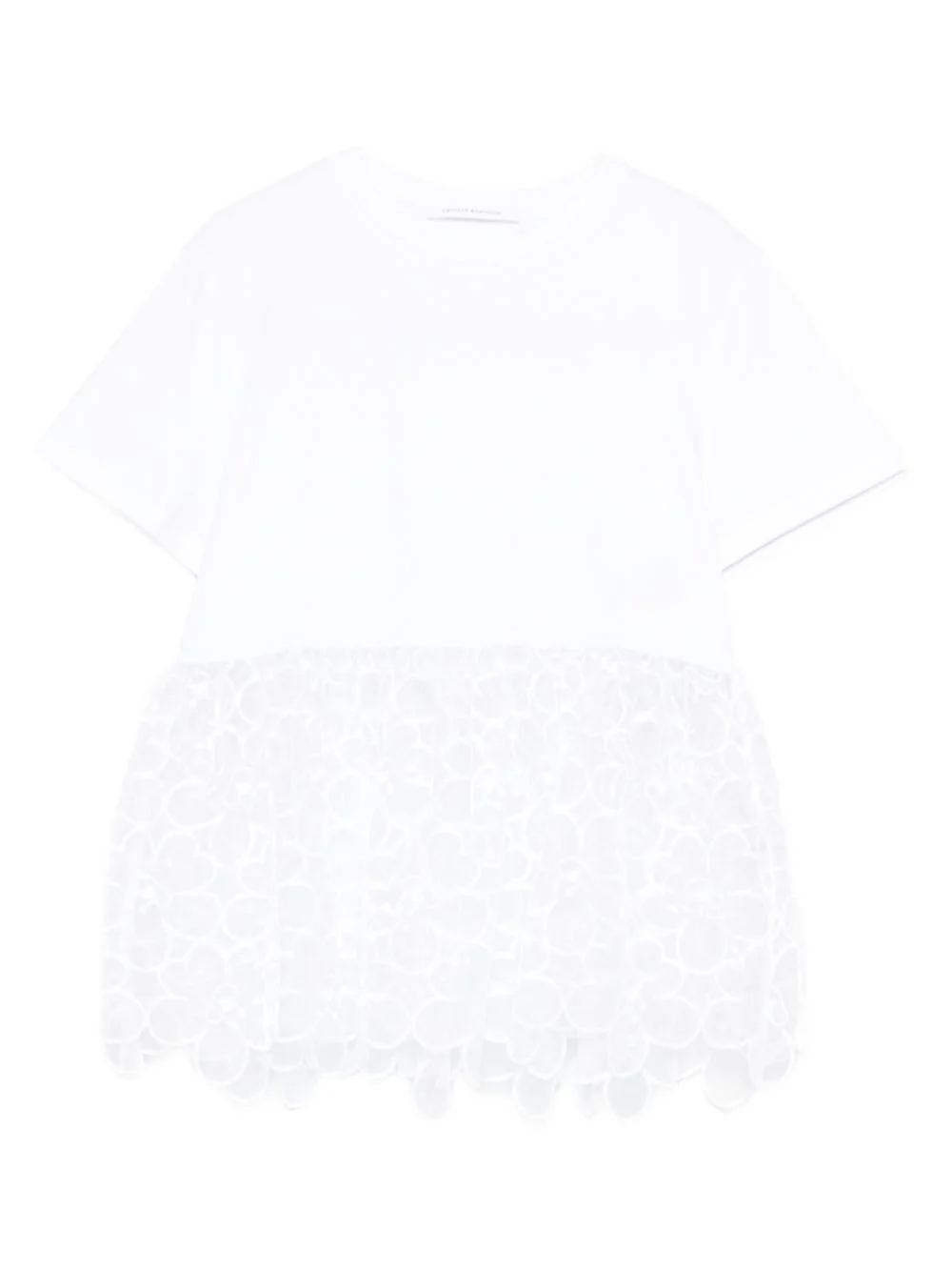 lace-detail T-shirt Highlights - White - Lace detailing - Short sleeves - Round neck Imported Composition Cotton 90%, Elastane 10% SIZE & FIT Model measurements Height 5 ft 9 in(1.76 m) Bust/Chest 31.88 in(81 cm) Hips 35.43 in(90 cm) Waist 24.8 in(63 cm) Washing instructions Hand Wash