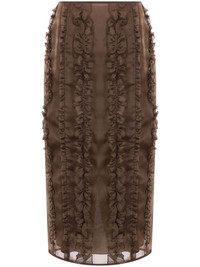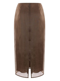 Ocean midi skirt Highlights - Earth brown - Silk - Organza - Semi-sheer overlay - Concealed rear zip fastening - High-waisted - Ruffled detailing - Rear slit - Satin lining - Straight hem - Mid-length Imported Composition Lining: Viscose 95%, Spandex/Elastane 5% Outer: Silk 100%