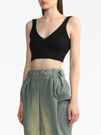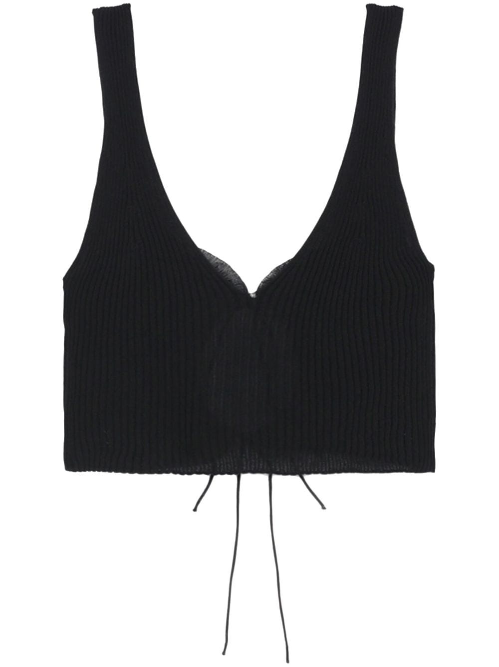 ribbed crop top This black crop top from Cecilie Bahnsen appears simple from the front, but the back tells another story: it's open and fitted with slender self-tie straps. Highlights - Black - Cotton blend - Ribbed knit - Open back - Self-tie fastening - Scoop neck - Sleeveless - Cropped Made in Italy Composition Cotton 100%